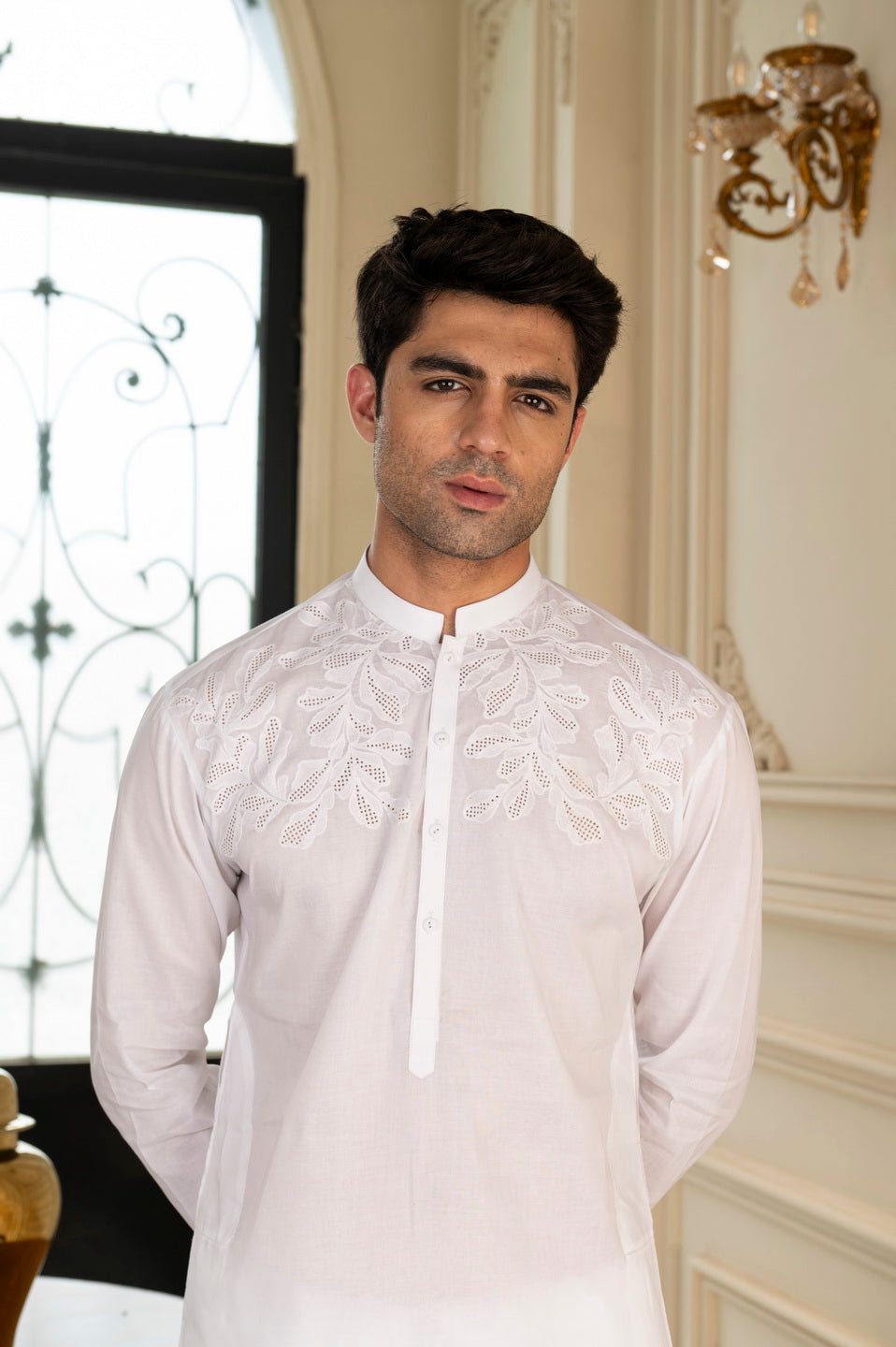 • Embroidered Chest Cutwork make with Imported Thread .
