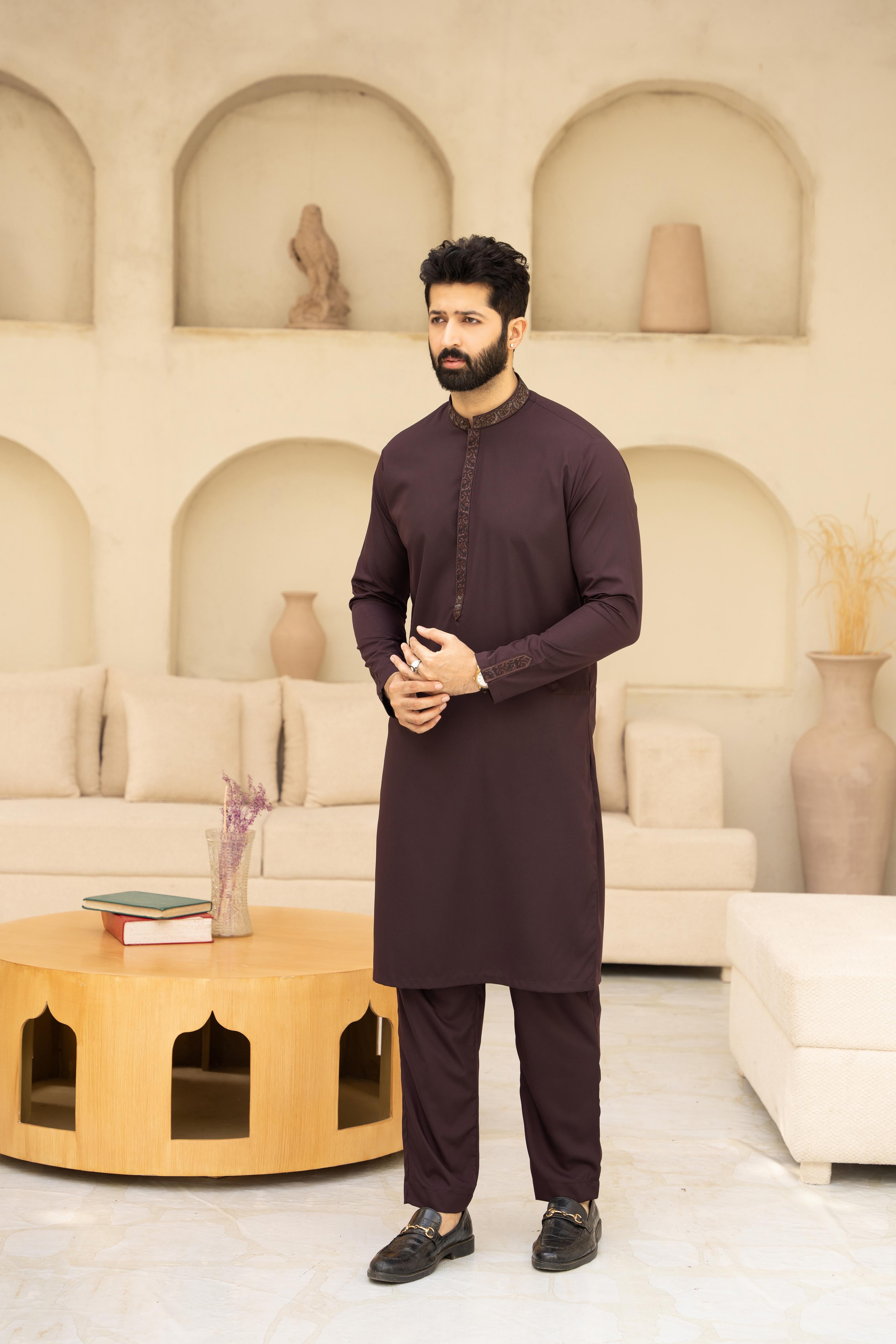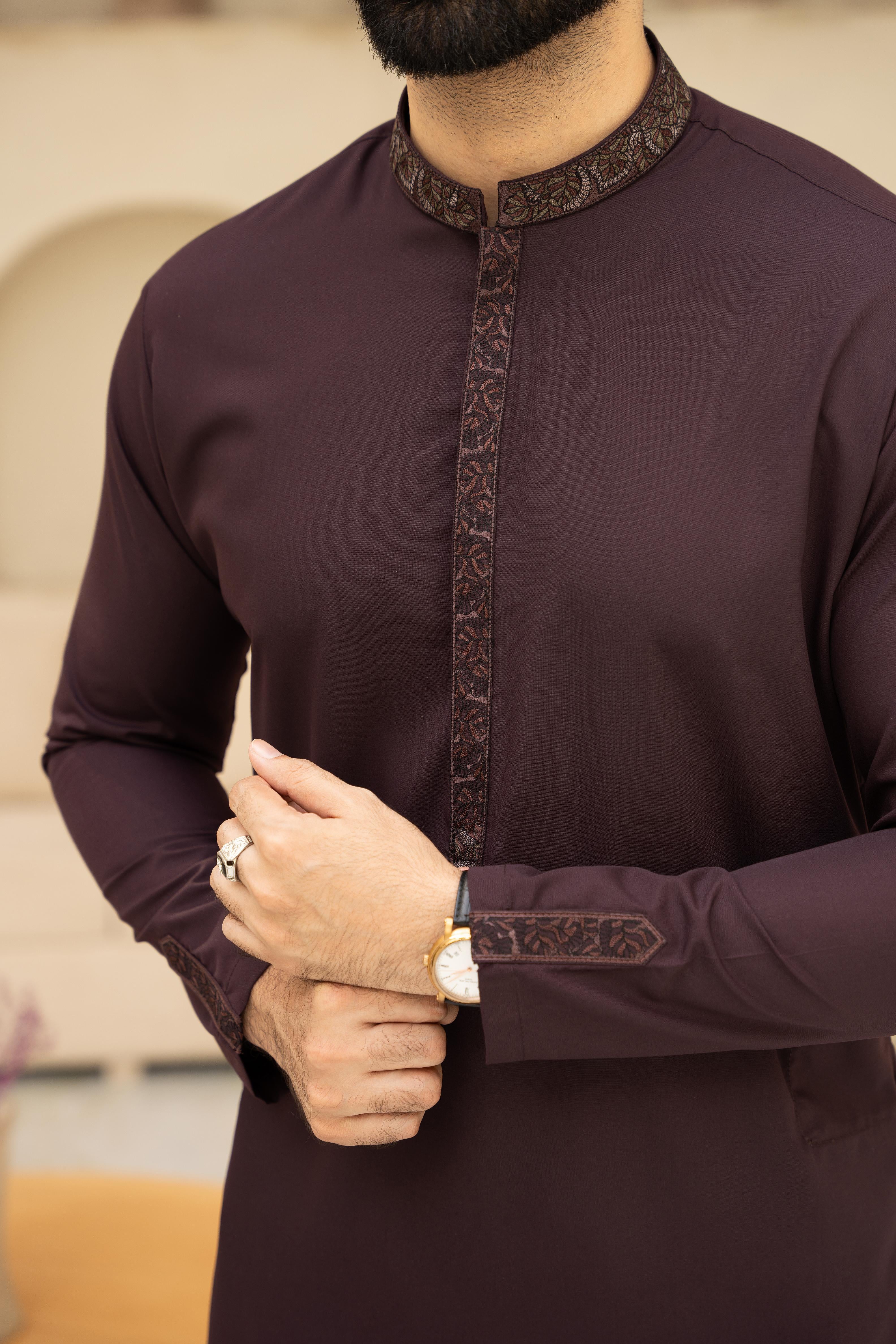 | Product category: Men Unstitch Multi-Embroiderd Bann/Placket & Cuff Strip Kameez Shalwar With Signature Pattern And Design. Fabric: Luxury Soft Wash N Wear Fabric,crafted from high-quality blended yarn fabric, offering both durability and style in one package. Size: 4 Meter. Color: Maroon-Oak. Add-On: Brand Label, Inlay-Card, Designer-Buttons. Disclaimer: *Due to the photographic lighting & different screen calibrations, the colors of the original product may slightly vary from the picture. |