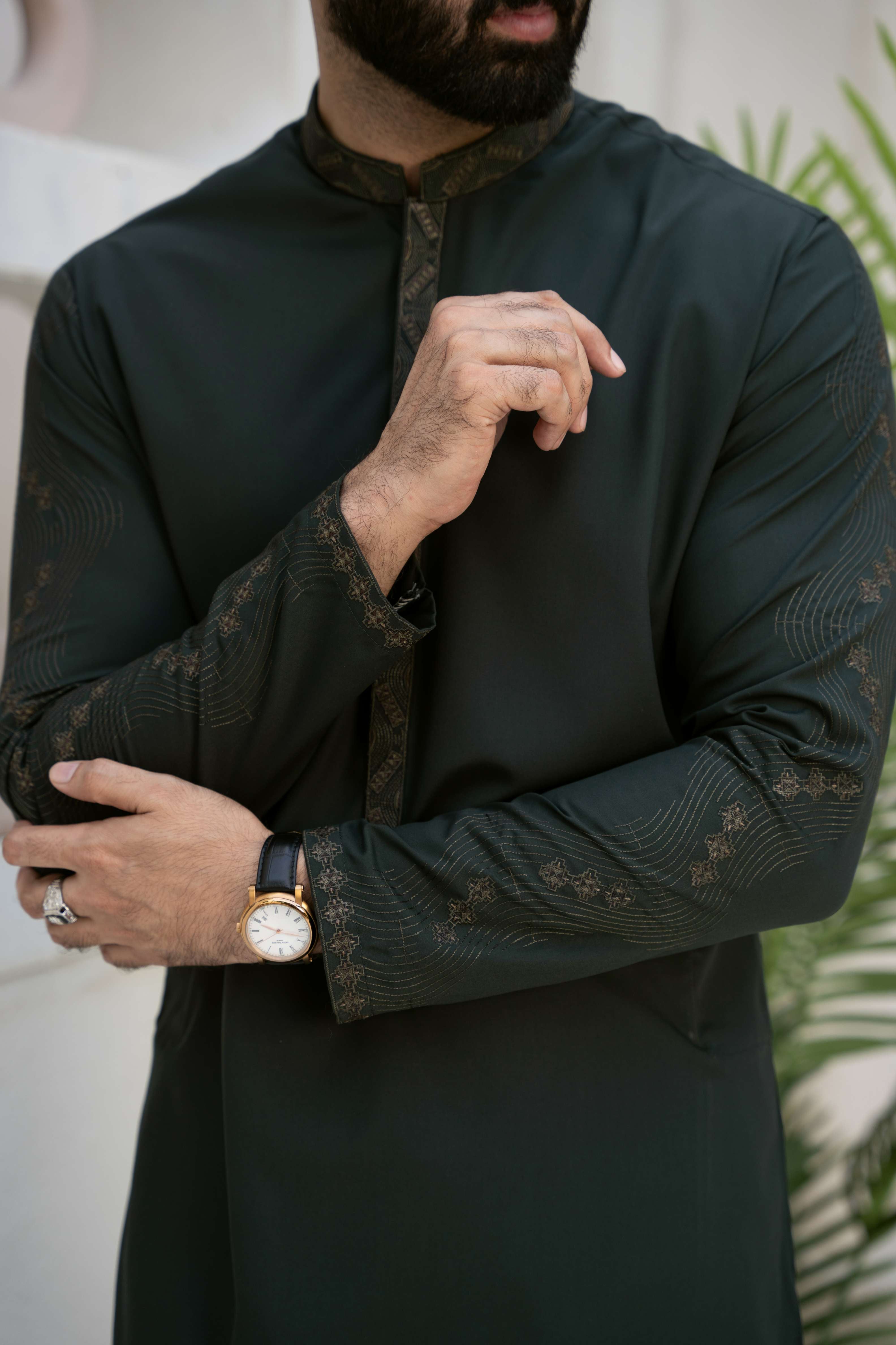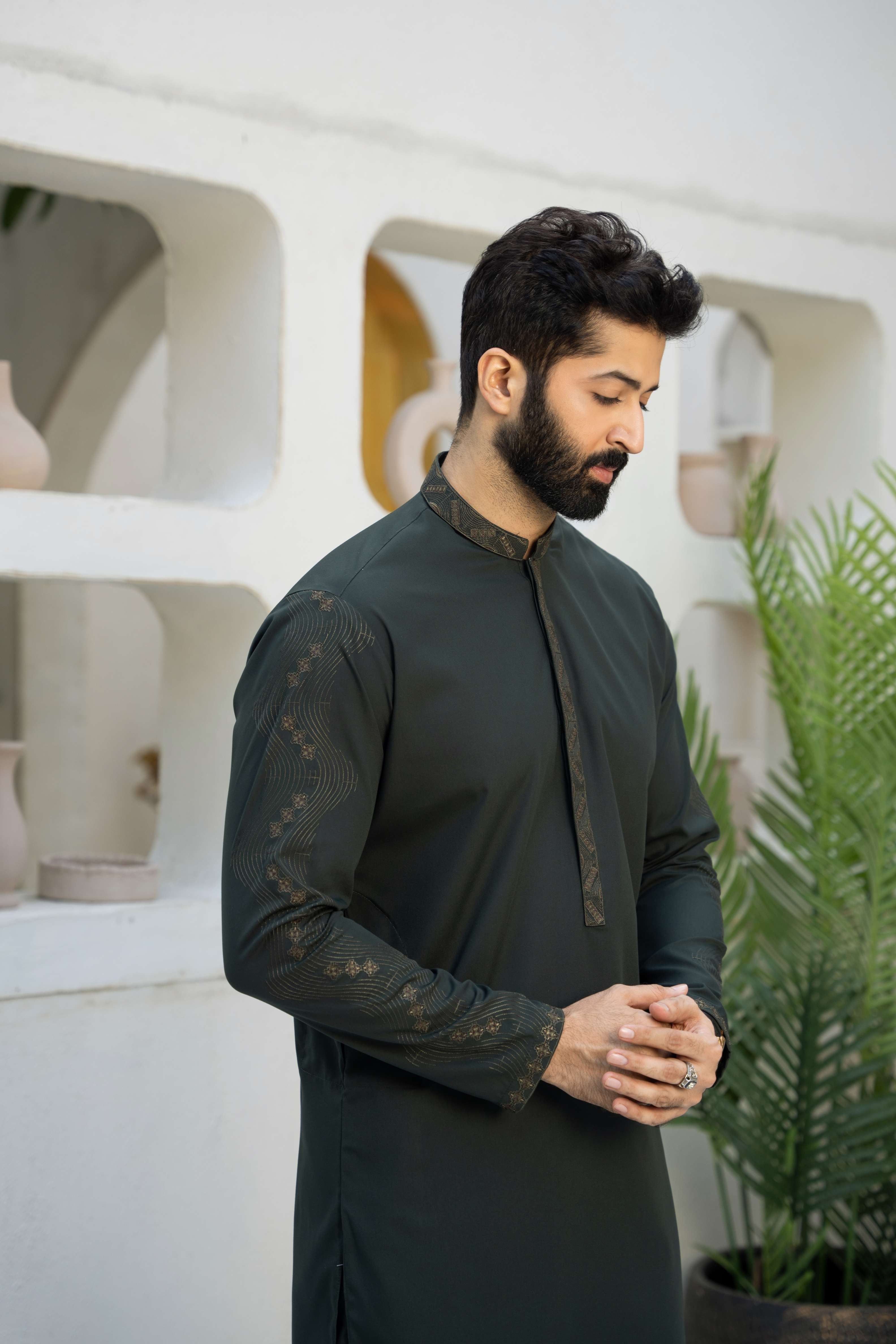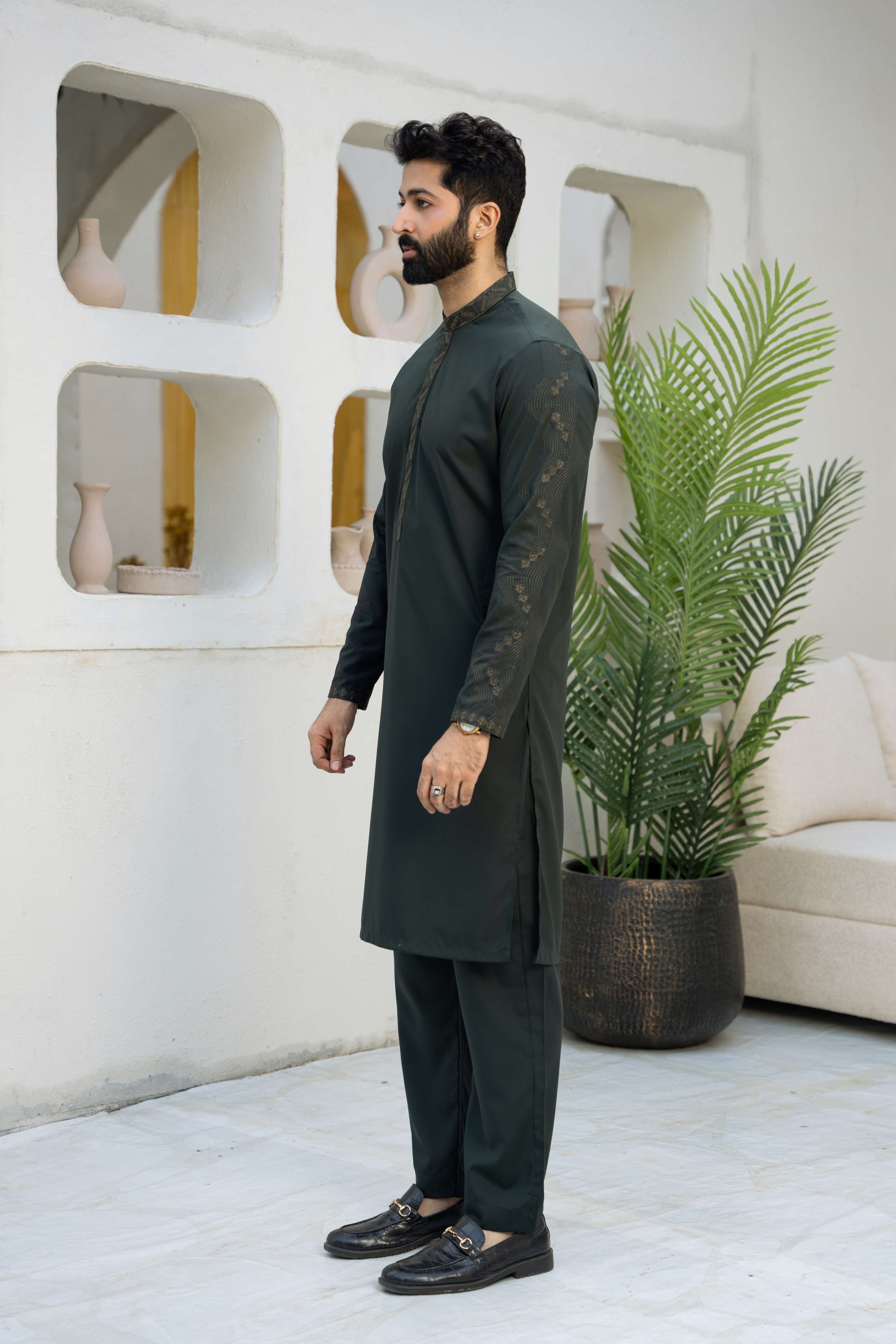 | Product category: Men Embroidered Unstitch Kameez Shalwar With Fully Sleeves Embroidered With Bann/Placket, Signature Pattern And Design. Fabric: Luxury Soft Wash N Wear Fabric,crafted from high-quality blended yarn fabric, offering both durability and style in one package. Size: 4.25 Meter. Color: Phthalo-Green. Add-On: Brand Label, Inlay-Card, Designer-Buttons. Disclaimer: *Due to the photographic lighting & different screen calibrations, the colors of the original product may slightly vary from the picture. |